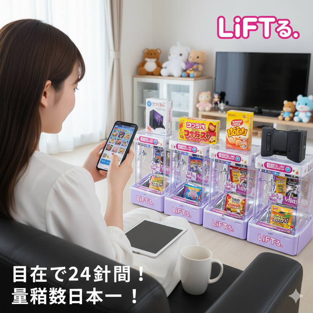 LIFTる。は、従来のゲームセンターでのクレーンゲーム体験を、時間と場所に縛られない新しい形へと進化させました。24時間365日、いつでもどこでも、豊富な景品にチャレンジできる喜びは格別です。