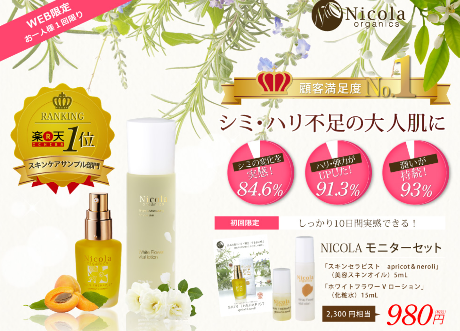 NICOLA organicsの魅力を気軽に体験できるモニターセットは、