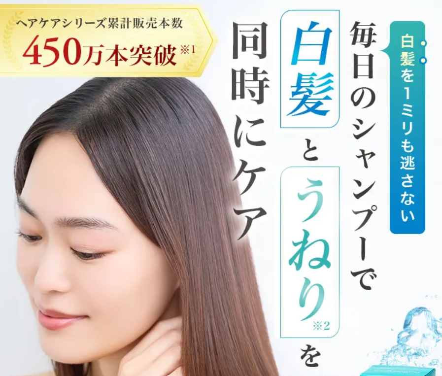 シャンプーしながら少しずつ自然に白髪が色づき、さらに髪のうねりケアまで叶うという新発想のアイテム。毎日のケアで“整う髪”を目指せるのが魅力です。