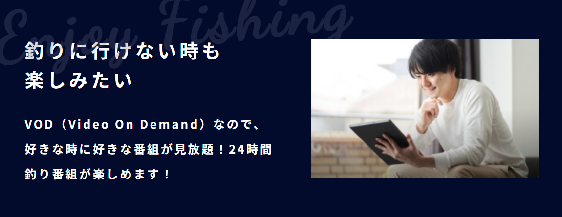 “釣り専門チャンネルの番組が見放題になるサービス”で、