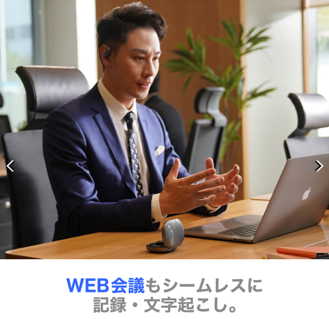 • PCやスマートフォンとBluetooth接続すれば、**Web会議や通話内容も自動で高精度に記録**。**「聞き逃し」や「聞き直し」のムダな時間をゼロ**にします。