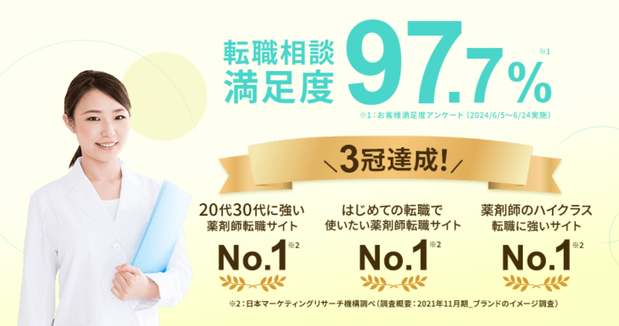 • 初めての転職で使いたい薬剤師転職サイトNo.1(※1)
