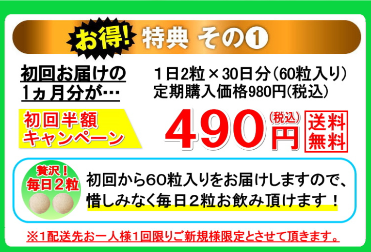 **高級原料を限界配合したサプリを、半額で始められる**のは今だけです!