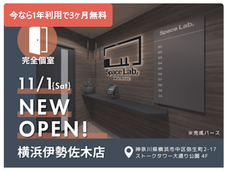 なんと、1年間の利用契約で賃料が3ヶ月分無料になるという太っ腹な内容です。固定費を極限まで抑えたい開業初期において、この「3ヶ月無料」のインパクトは計り知れません。