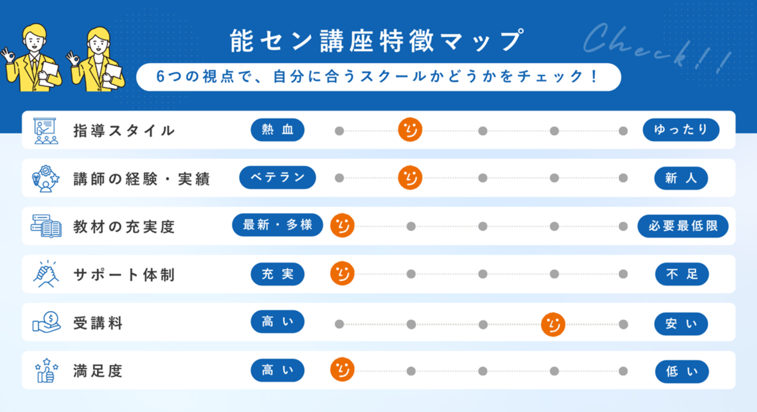 多くのスクールが「わかりやすい講義」を提供するのは当たり前。能センが他と一線を画すのは、受講生の学習状況を毎日フォローする「勉強フォローアップサービス」です。