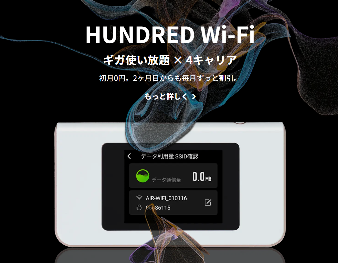 A:HUNDRED Wi-Fiを運営する株式会社hundredは福岡に本社を置く日本企業です。余計な広告費を削り、徹底した内部コスト削減によってこの低価格を実現しており、通信の質にも定評があります。