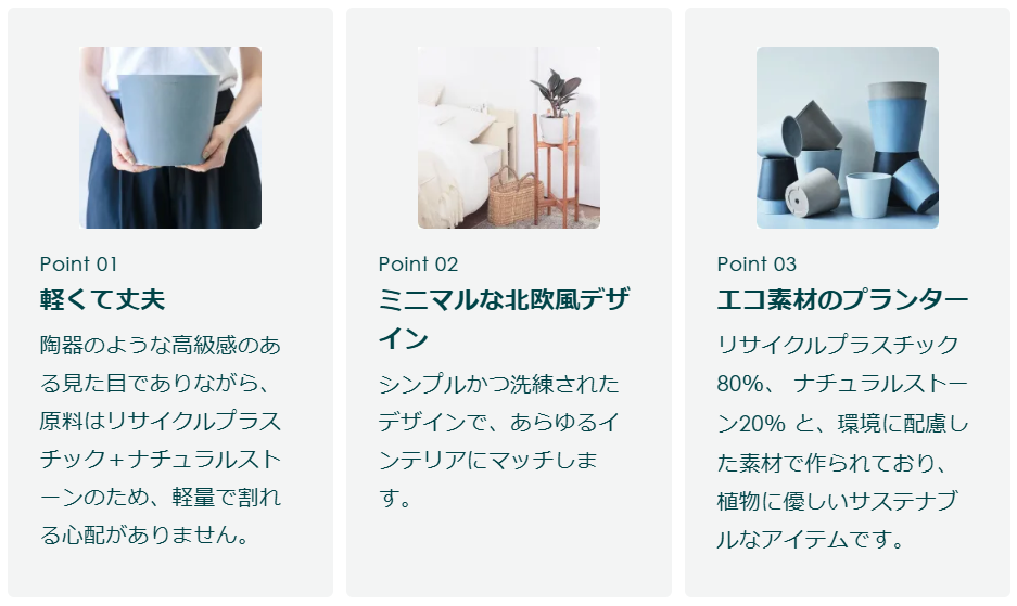 「鉢選びにいつも苦戦していたので、最初からセンスの良い鉢に入って届くのは本当に助かります。鉢の質感も高級感があって、リサイクル素材とは思えないクオリティでした!」(40代・男性)