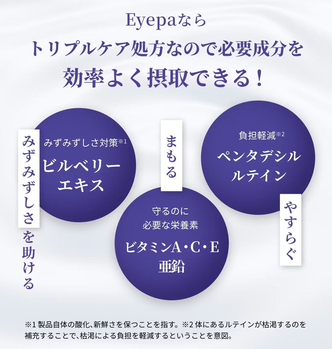 もし、あなたが今のコンディションに少しでも不安を感じているなら、成分・配合・監修すべてにこだわったEyepaを、今すぐあなたの習慣に取り入れてみてください。