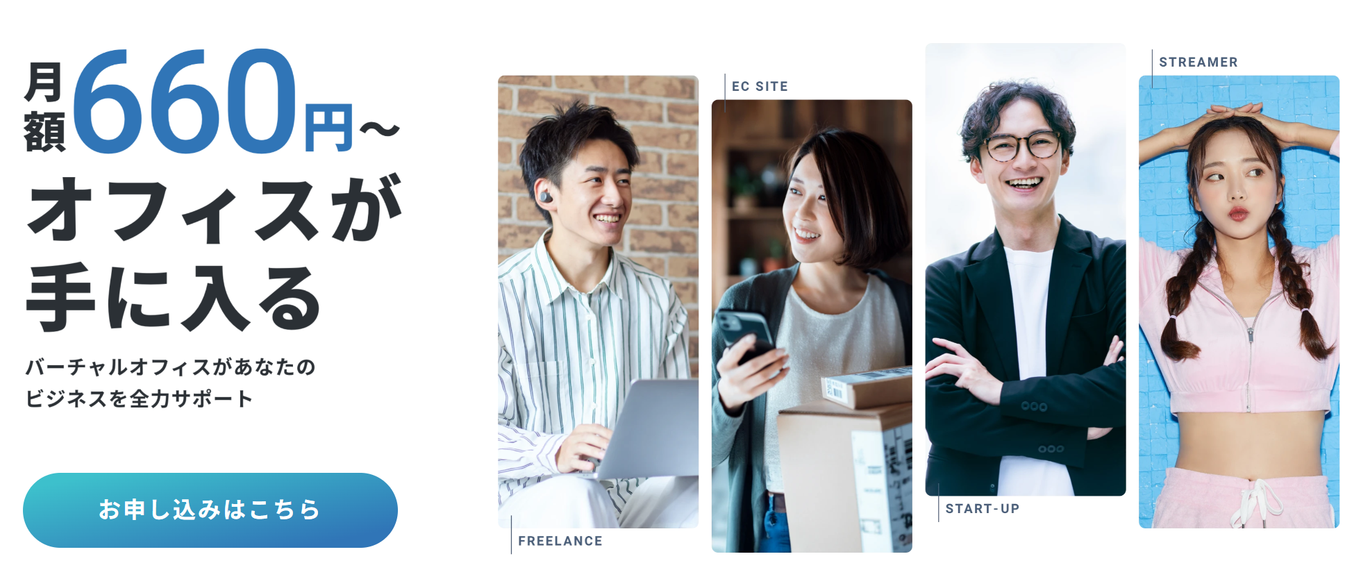 登記不要・郵便物転送なしの「転送なしプラン」なら、なんと月額660円(税込)から利用可能。ネットショップの運営者や、名刺に住所を載せたいだけのフリーランスに最適です。