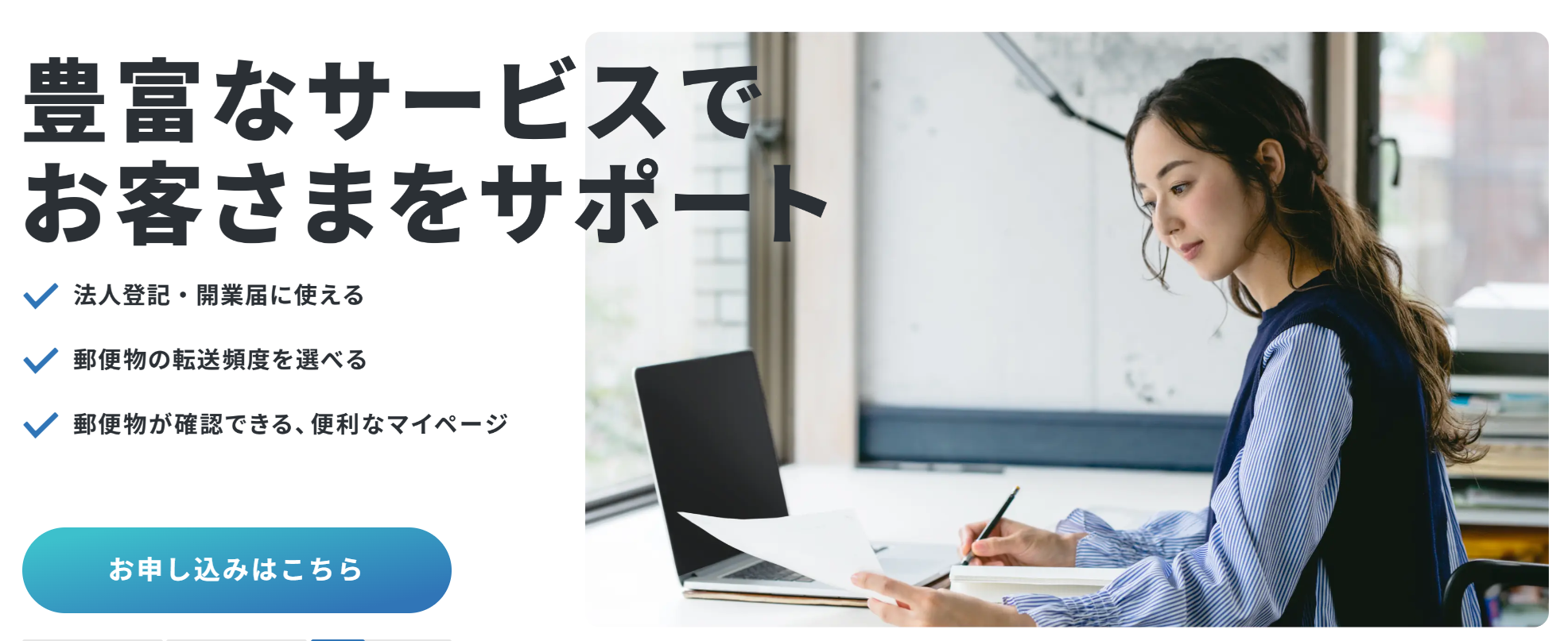 そんなビジネスの第一歩を踏み出す方に選ばれているのが、GMOインターネットグループが提供するバーチャルオフィス「GMOオフィスサポート」です。