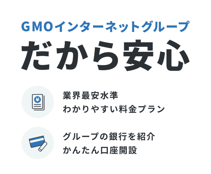 • 銀行口座開設サポート:GMOあおぞらネット銀行とのスムーズな連携。
