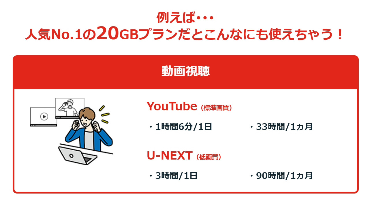 • YouTubeやSNSを毎日楽しむ: 20GB〜30GBの大容量プラン