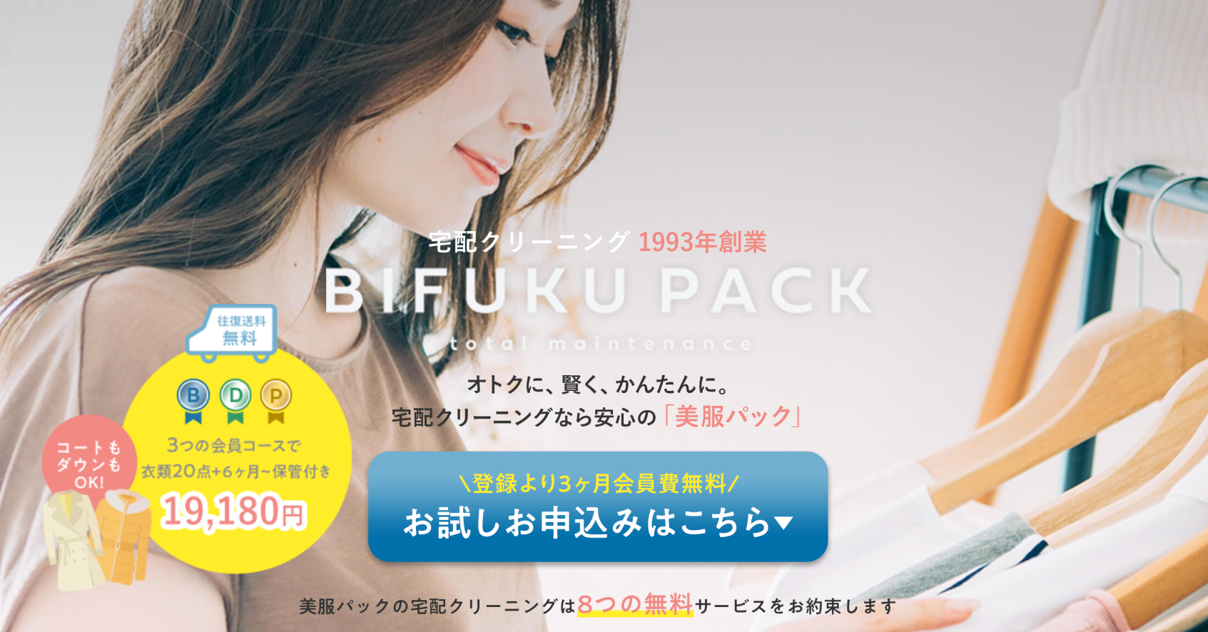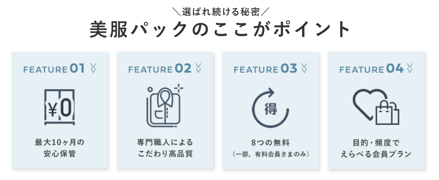 賢く節約しながら、お気に入りの服を長く大切に着たい。そんなあなたの願いを叶えてくれる美服パックで、心までスッキリするような衣替えを体験してみてください。