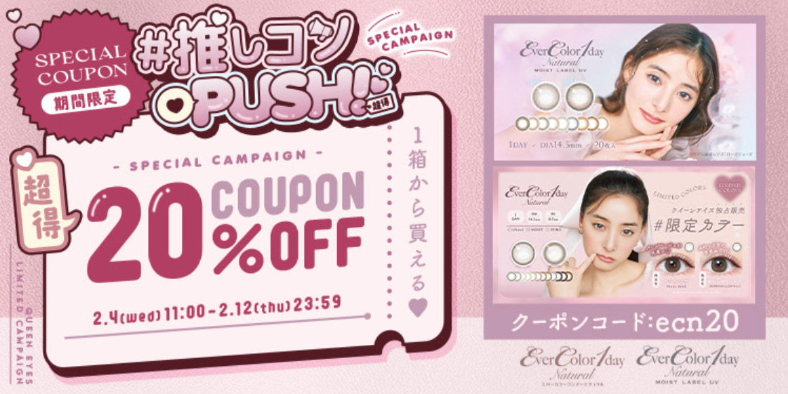 同じカラコンを買うなら、少しでもお得に手に入れたいのが本音ですよね。クイーンアイズでは、他サイトにはない「独占キャンペーン」が随時実施されています。