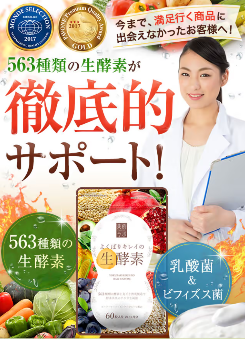 ただ酵素を摂るだけでなく、その力をしっかり活かすための環境作りにもこだわっています。よくばりキレイの生酵素には、「乳酸菌」や「ビキール菌」といった有用成分が配合されています。