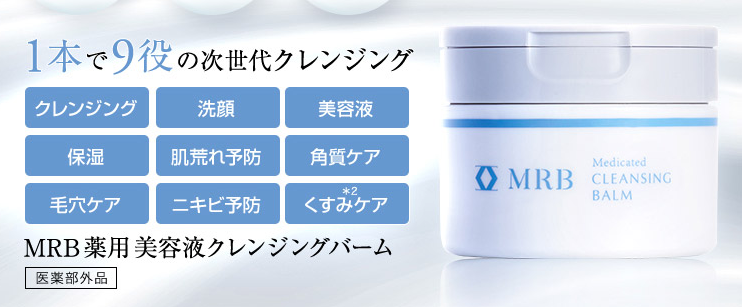 MRB 薬用 美容液クレンジングバームは、毛穴悩みや肌荒れに本気で向き合いたい大人のための「攻めと守り」のクレンジングです。有効成分がトラブルを防ぎ、美容成分が肌を包み込みます。