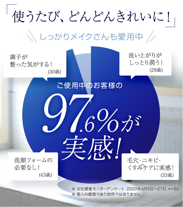 「マスク生活で肌荒れやニキビに悩んでいましたが、医薬部外品という言葉に惹かれて購入。使い始めてから肌が柔らかくなった気がします。毛穴の黒ずみケアとニキビ予防が同時にできるのは本当に心強いです。」(30代・敏感肌)