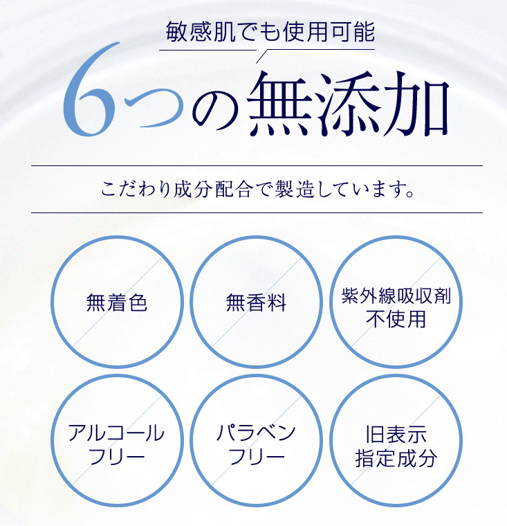 (無着色・無香料・紫外線吸収剤不使用・アルコールフリー・パラベンフリー・旧表示指定成分不使用)