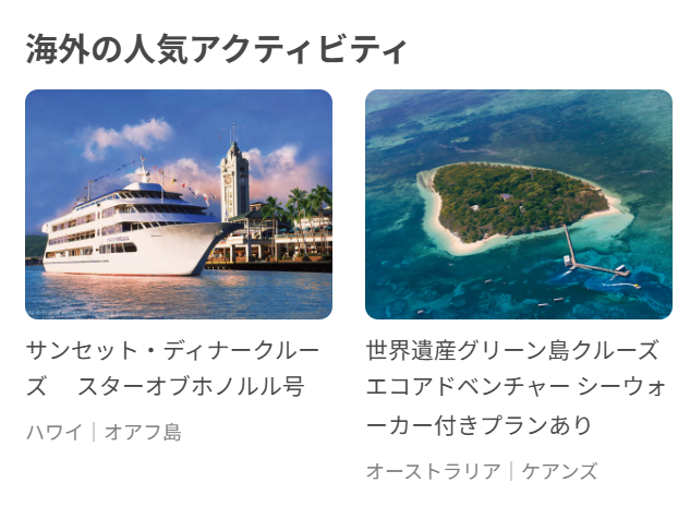 「航空券とホテルは取ったけれど、現地での過ごし方が決まっていない」「海外でアクティビティをしたいけれど、英語での予約は不安…」「ガイドブックに載っていないような特別な体験をしてみたい」