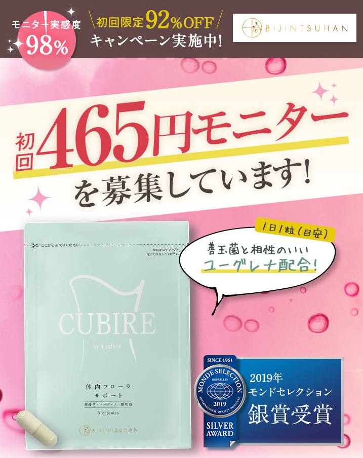 クビレ バイ ユーグレナ(CUBIRE by euglena)は、単なるダイエットサポートの枠を超えた、体内フローラメンテナンスの決定版です。最新の科学的知見に基づいた成分配合が、あなたの理想のライン作りをサポートします。