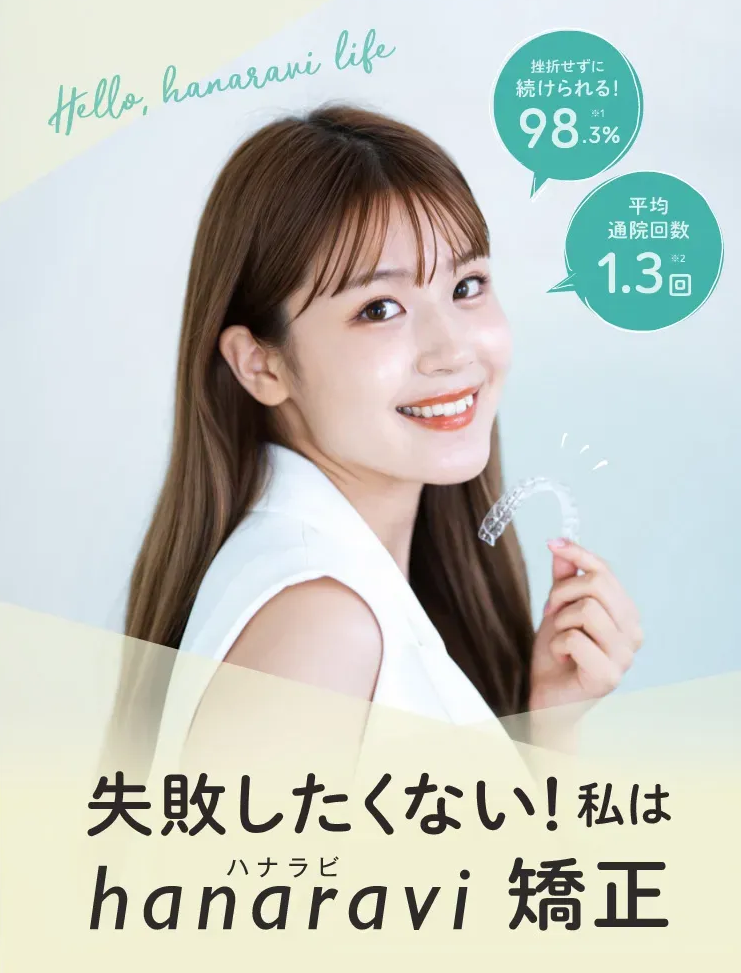 hanaravi(ハナラビ)は、価格の不安、通院の負担、見た目のストレスという、歯科矯正の三大ハードルを見事に解消したサービスです。