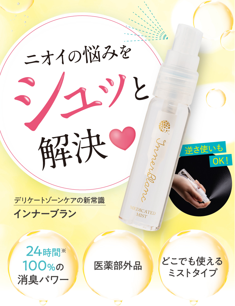 そんな「消えない不安」を、シュッと吹きかけるだけで解消してくれるのが、デリケートゾーン専用消臭ミスト「インナーブラン(inner b)」です。医薬部外品として認められた確かな実力と、驚きの持続力の秘密を徹底解説します。今日からニオイに怯えない、自信に満ちた毎日をスタートさせましょう。