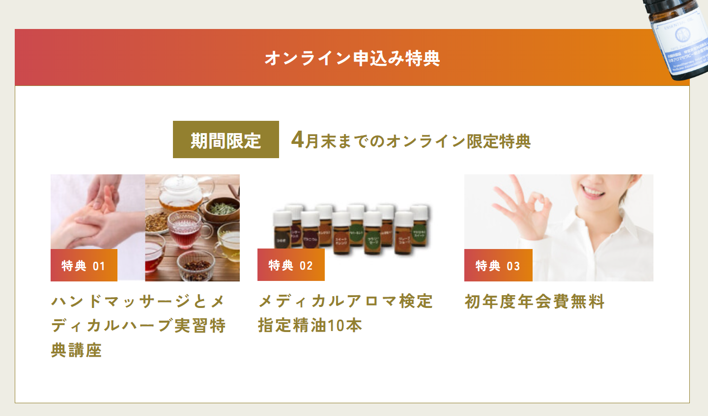 会場費や人件費を徹底的にカットできるオンラインだからこそ実現したこの価格。さらに、資格取得時の初年度年会費(7,000円分)が免除されるという、家計を預かる世代にはたまらない配慮もされています。浮いたお金で、新しい精油を買い揃えたり、将来の独立資金に回したりと、賢い自己投資が可能です。
