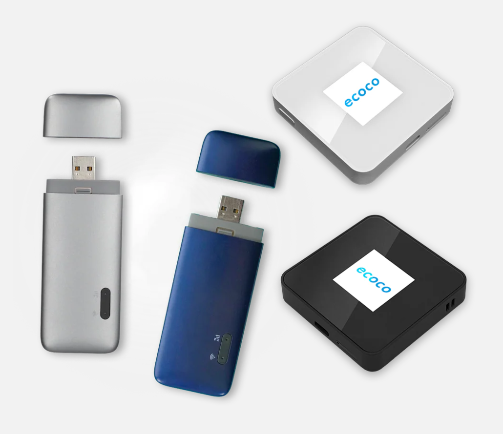 ecocoは、「月額料金」「契約期間の縛り」「バッテリー発火の危険性」という、これまでのモバイルWi-Fiの弱点をすべて克服した、まったく新しいUSB型ルーターです。